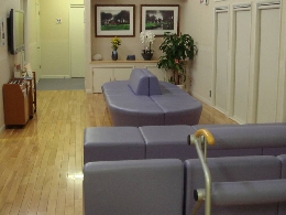 待合室はゆったり座れるような広い椅子を置いております。腰の悪い方や座ることができない方のための腰掛バーも設置しております。